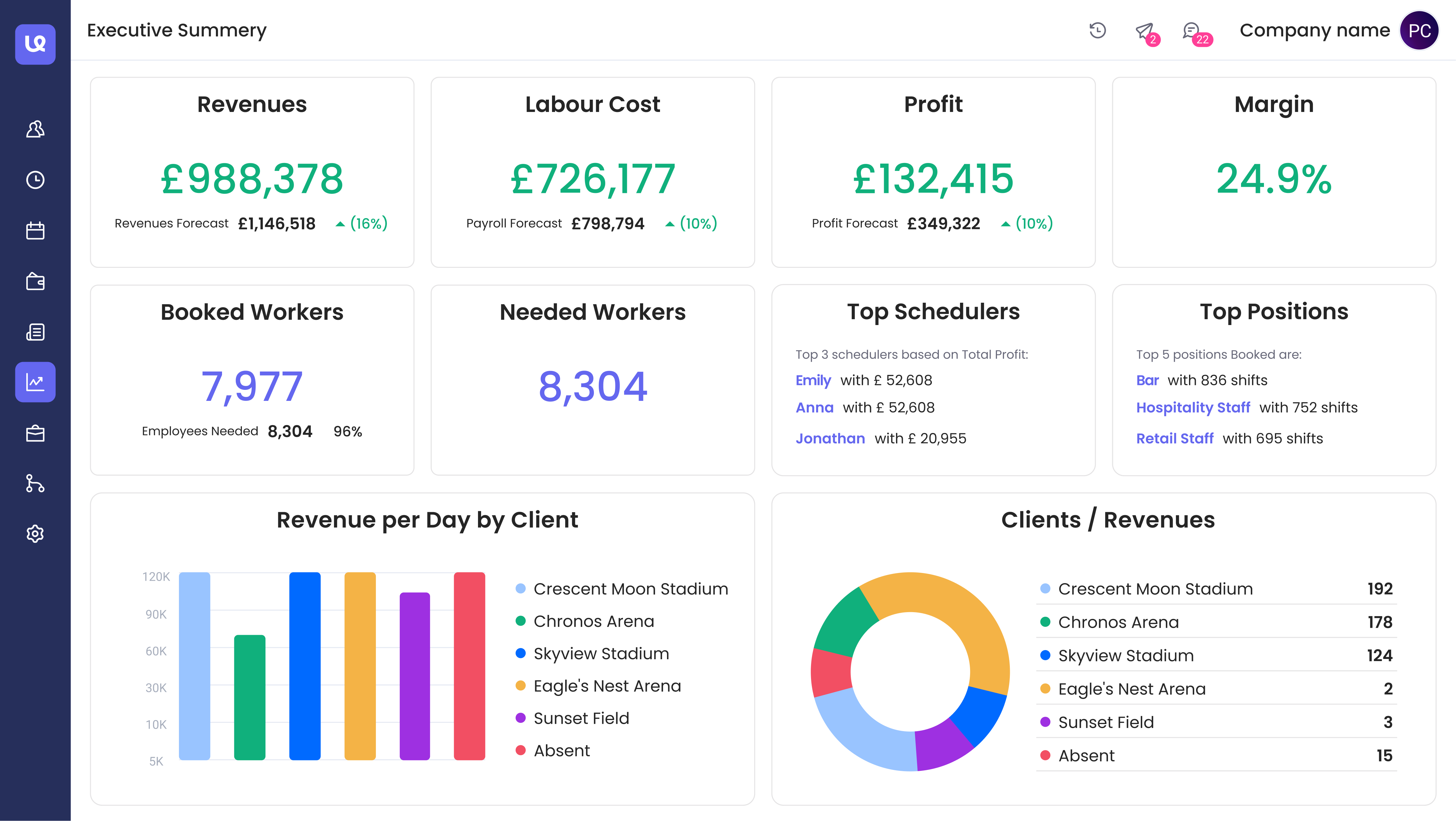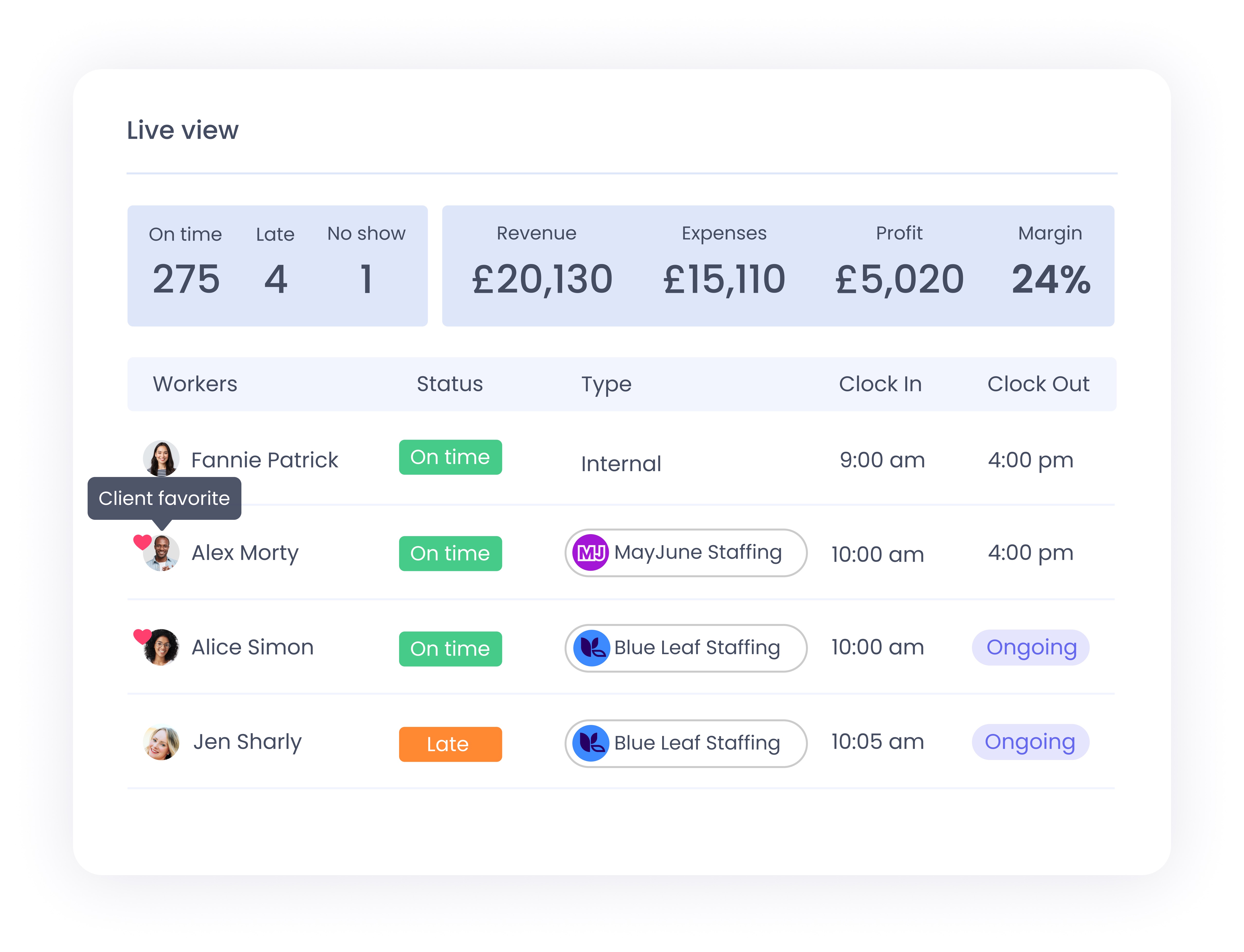 Ubeya’s real-time time and attendance software provides live visibility into who’s working, where, and when - across all active venues and locations.