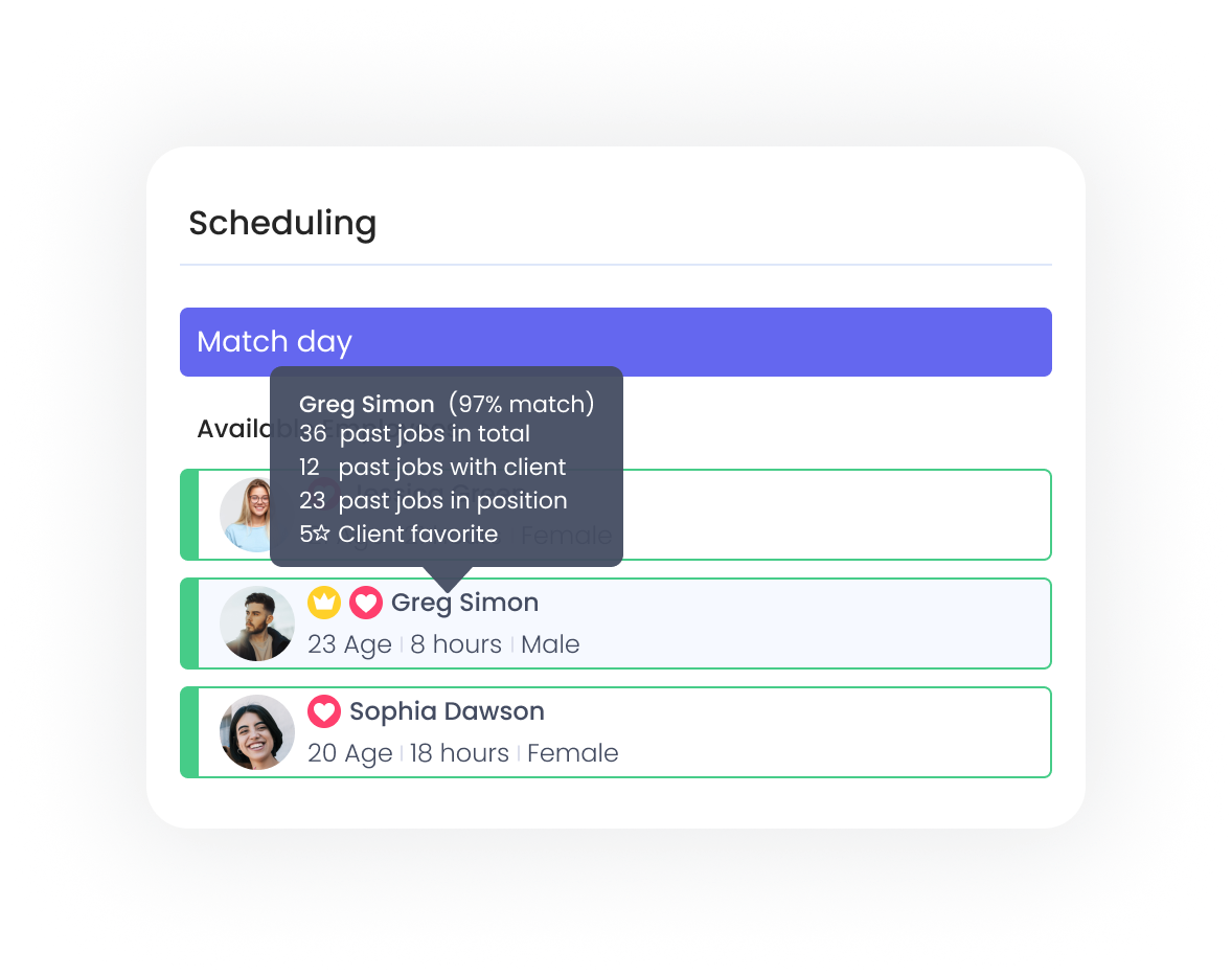Ubeya’s AI-powered scheduling engine automatically matches workers to shifts based on: