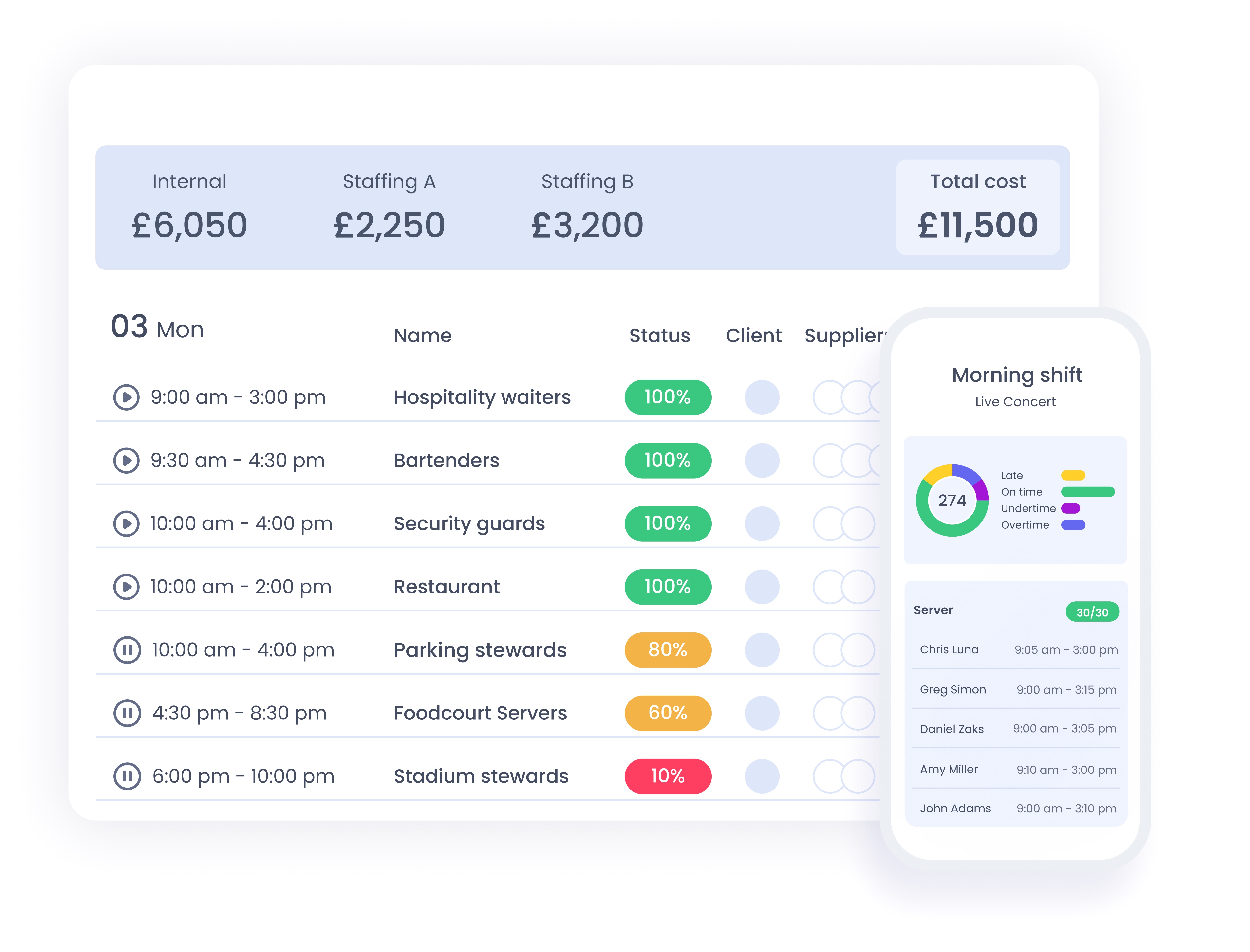 - Monitor attendance and coverage in real time